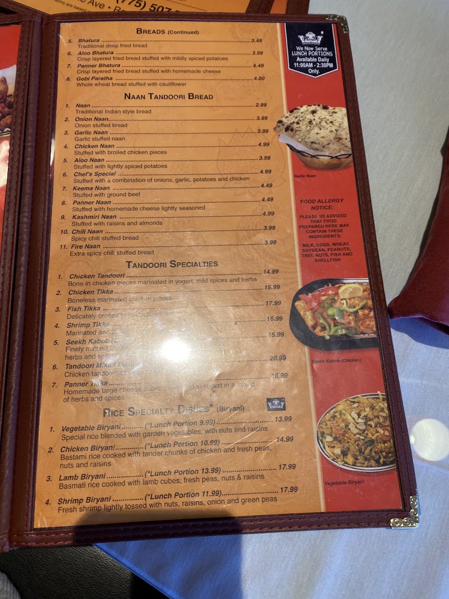 basmati rice cooked with goat cubesand fresh peas ,nuts and raisins.