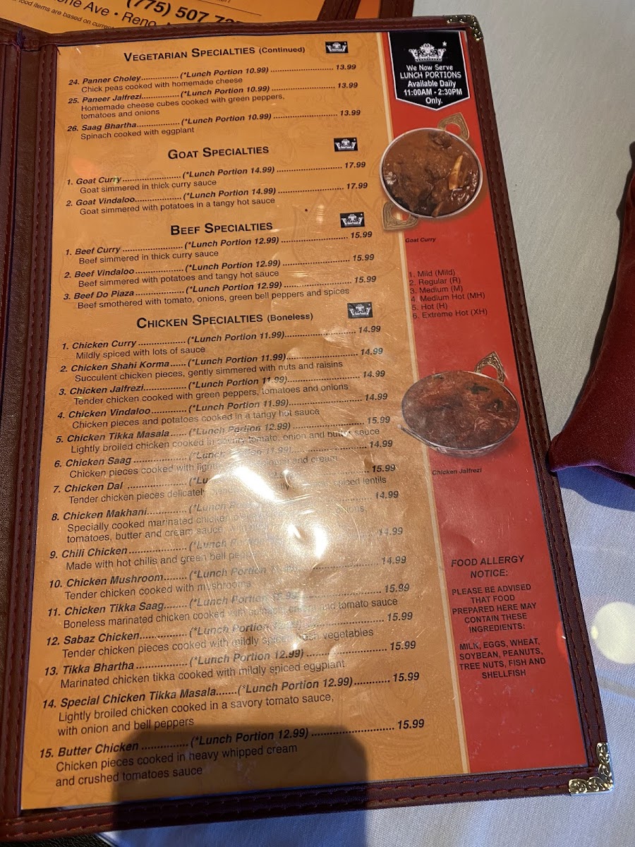 Masala sauce, rich in spices, customizable spice level from mild (1) to extra hot (6).